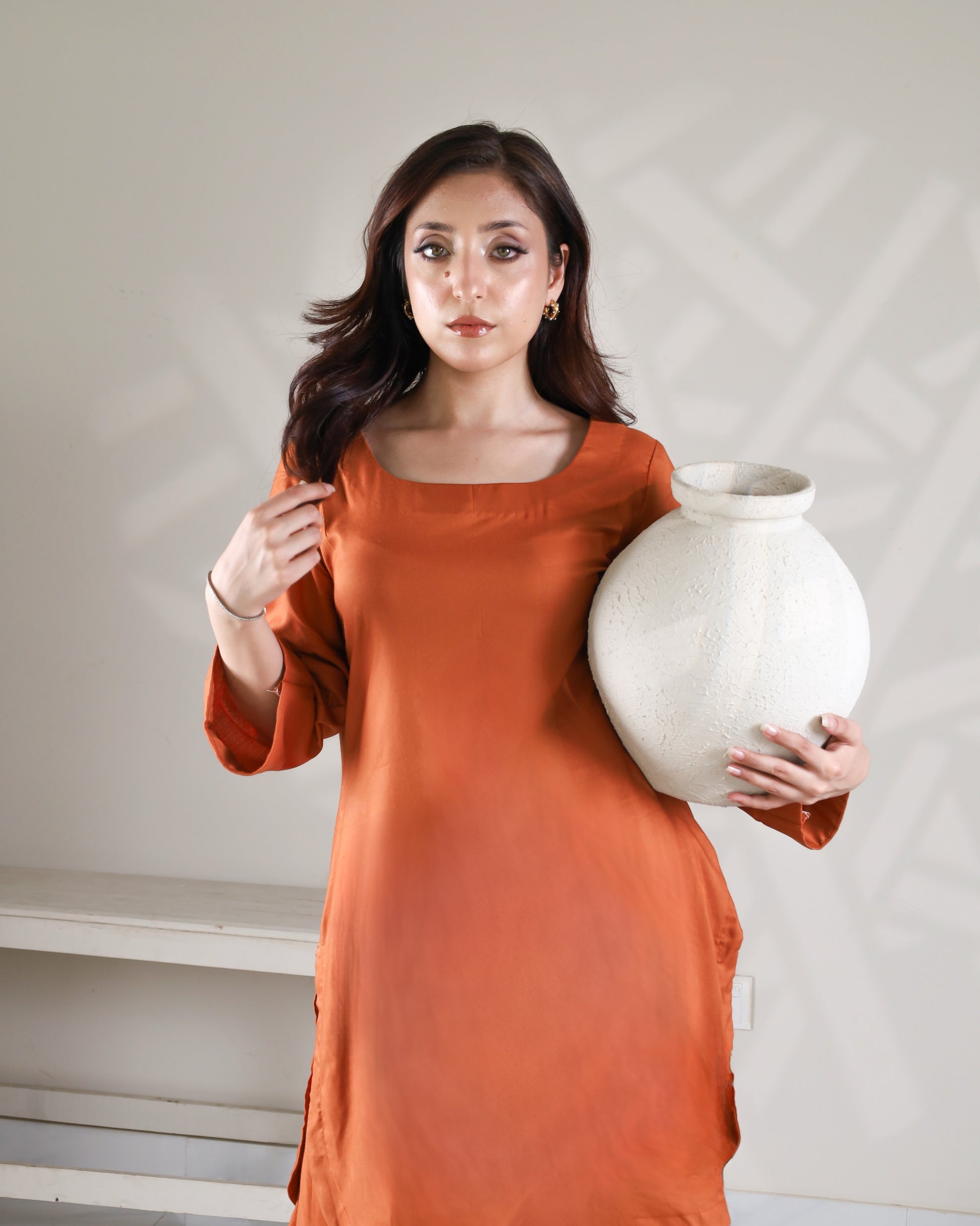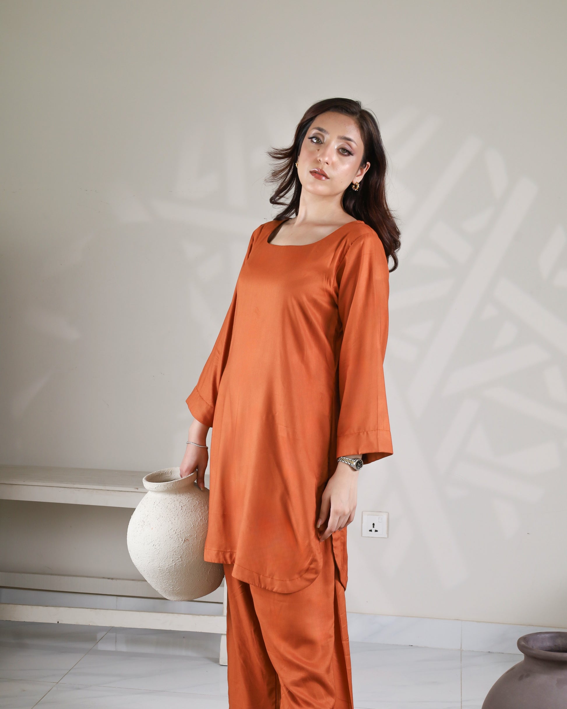 Tailored in soft linen, Amber captures warmth and comfort in every fold. The rich rust tone brings an earthy charm to a relaxed, timeless silhouette.