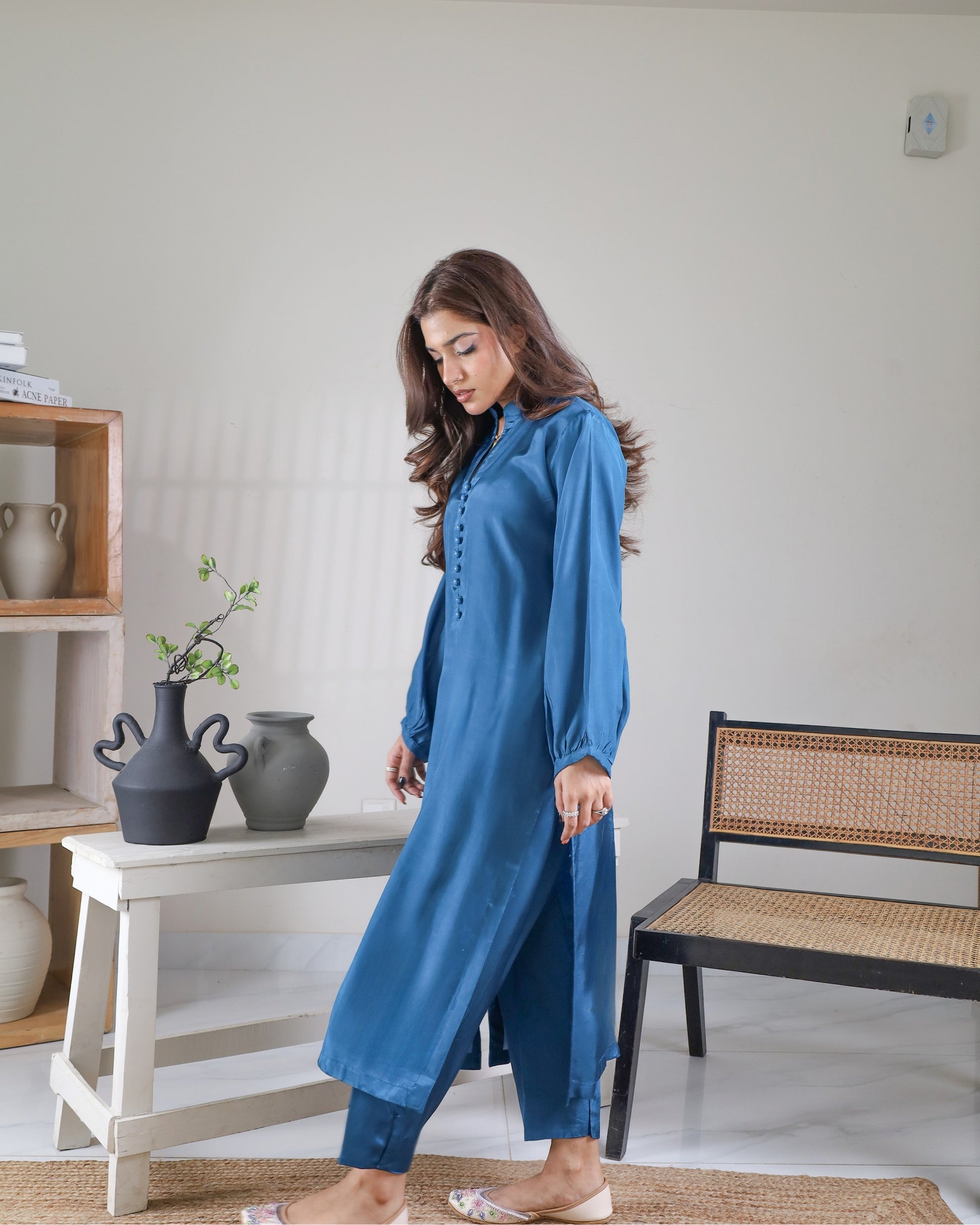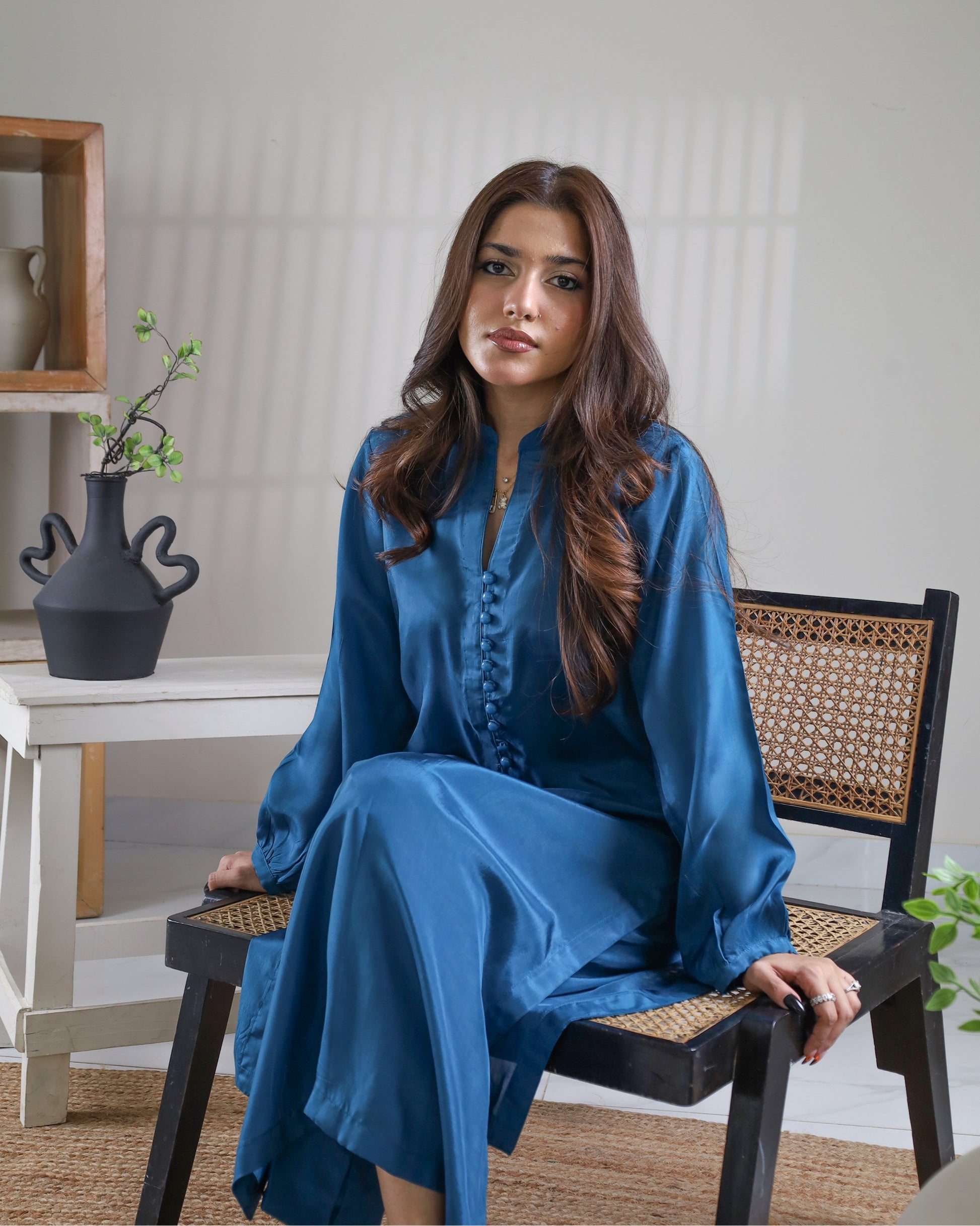 Made from fine Russian silk, Lehr flows like a gentle wave. The teal hue adds depth and calm, making it a perfect blend of elegance and ease.